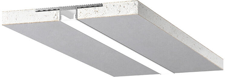 Extrudált alumíniumból készült moduláris rendszer, 2 db 12,5 mm vastag gipszkarton panelbe építve, teljesen rejtett süllyesztett szereléshez szekcionálható. Tartalmaz egy eldobható átlátszó diffúzort borotválkozáshoz és festéshez, valamint egy matt fehér polikarbonát diffúzort. Közvetlen világítás. Csak 2 darabos csomagban kapható.