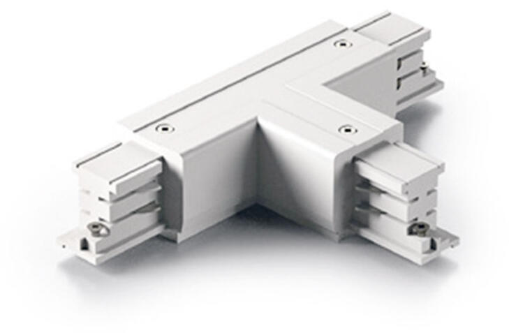 T-csatlakozó elektromos és mechanikus csatlakozáshoz, bal oldali bemenettel. Tápegységként is használható. Matt fehér kivitel.