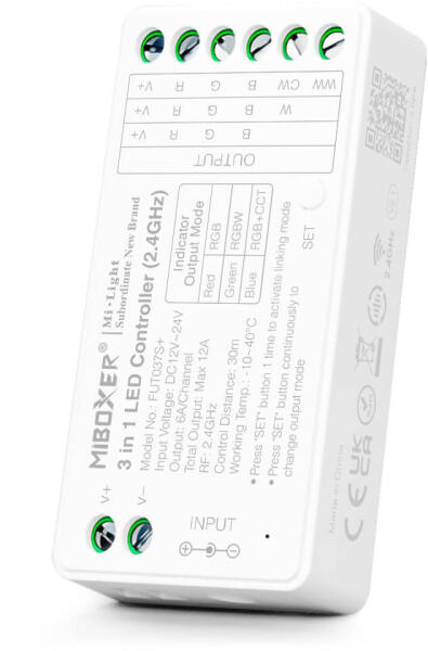 Mi-Light MiLight 3 az 1-ben RGB/RGBW/RGB+CCT LED zóna vezérlő FUT037S+ DC12-24V - 12A (FUT037SPLUS)