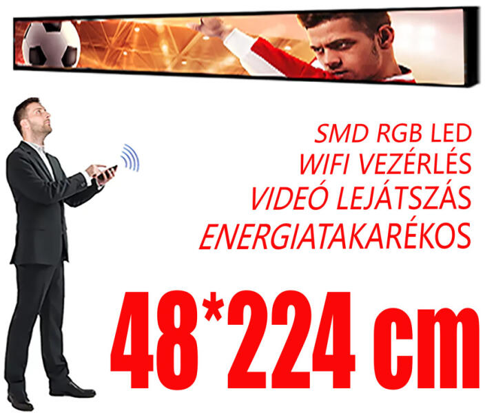 Professzionális, színes ledfal mozgó feliratokhoz, animációkhoz és fényreklámokhoz, kültéri és beltéri kivitelben. Nagy fényerejű, alacsony fogyasztású SMD LED-ekkel, wifis vezérléssel és ingyenes telefonos applikációval.
