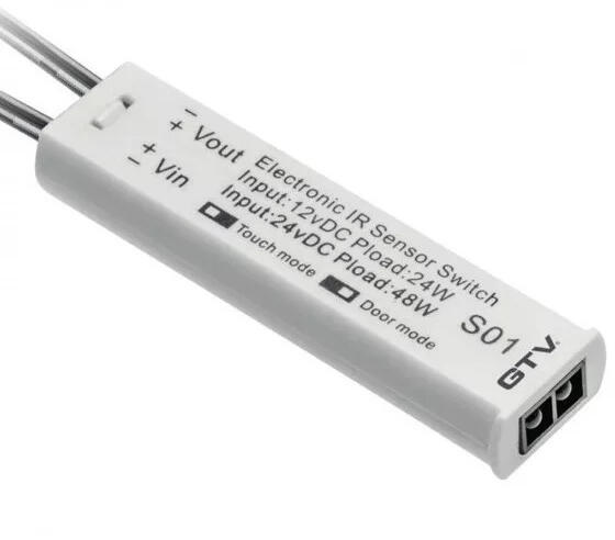 Az üzemmódok a kapcsoló oldalán található dip kapcsolóval állíthatóak. Használható 12VDC vagy 24VDC feszültségű LED szalagokkal. Befúrható d=15mm furatba, vagy felületre ragasztható a mellékelt kétoldalas ragasztóval. A kapcsoló hossza 53mm, a tápkábelek hossza 1méter. Kapcsolható áram: 2A 12V/24W vagy 24V/48W