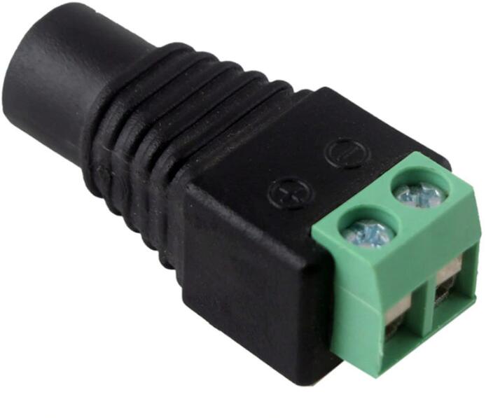 Tápcsatlakozó 2,1 x 5,5 mm-es csatlakozóblokkal. A maximális terhelés 5A, a maximális üzemi feszültség 50V=/~.