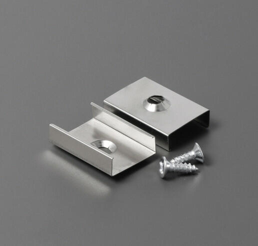Rozsdamentes acélból készült klikk rögzítőelem a BEGTON12 és BEGTIN12 LED profil gyors rögzítéséhez. Fára szerelve a kónuszos kialakítás megkönnyíti a süllyesztett csavarok használatát.